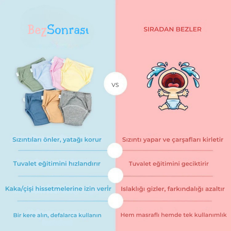 Bir kez satın alırsınız ve çocuğunuzun bezden tamamen kurtulması için tasarlanmıştır — her ay yeni bez almaya devam etmeniz için değil.